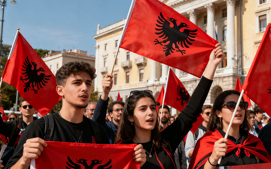 这里是鹰的国度,国徽上的双头猛禽左眼凝视君士坦丁堡的残月,右眼倒映罗马的落日。当吉普赛铜匠将北约子弹壳锻成耳环,当奥斯曼浴场遗址上立起5G基站,亚得里亚海的风终将吹散所有悖论——只留下狄纳拉山脉的岩缝间,那些从未被征服的野性基因,仍在刺破温驯的黎明。