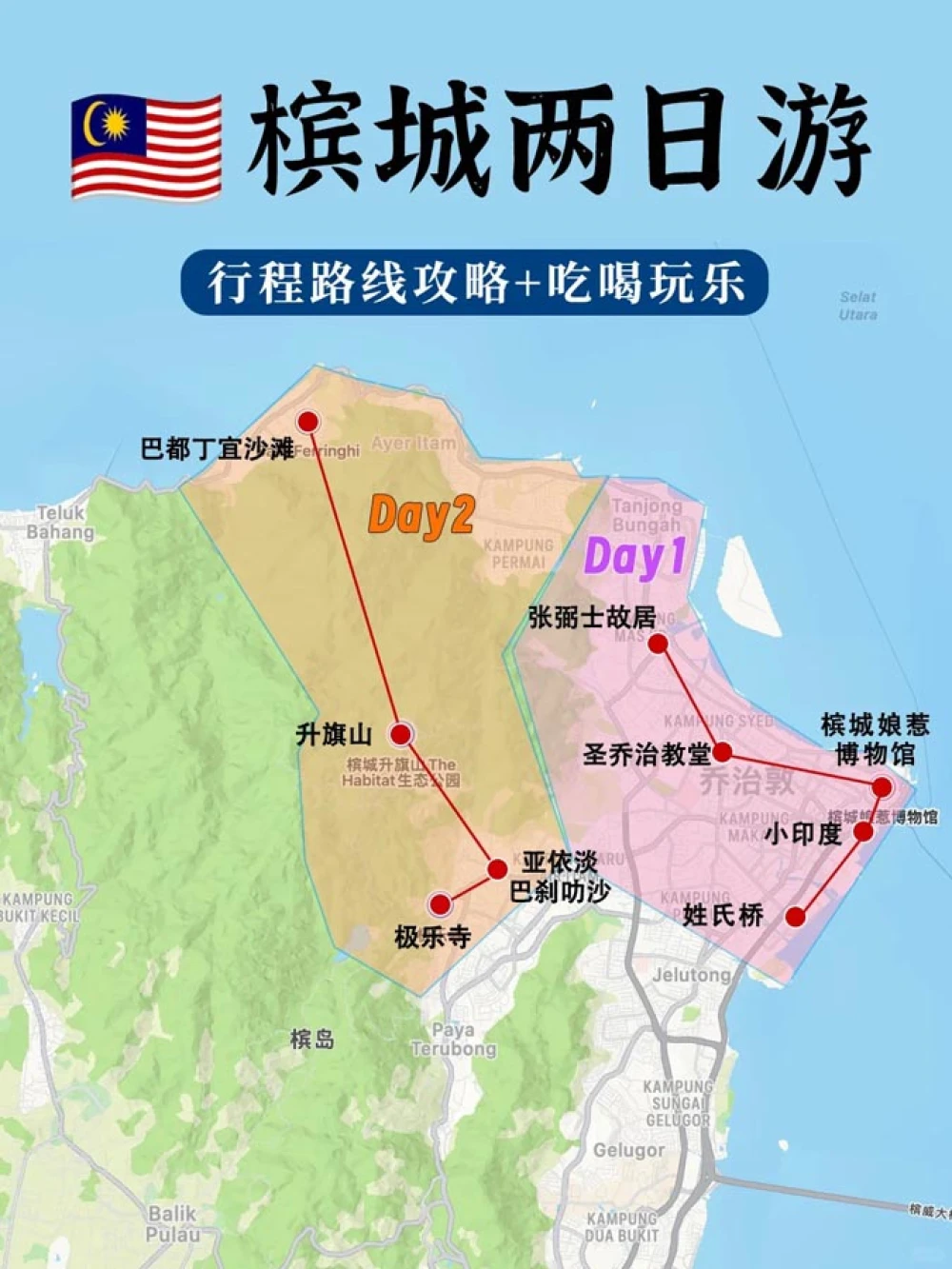 如果你在槟城呆的时间超过5天,则可以继续探索其他的区域和景点。