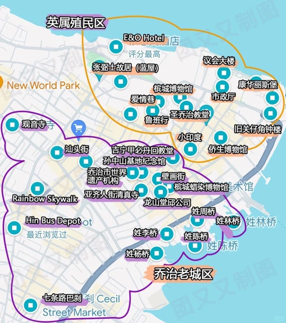 几乎所有到槟城的游客都会游览乔治城老城里的景点,这里也是绝大部分到槟城的游客只会游览的区域。