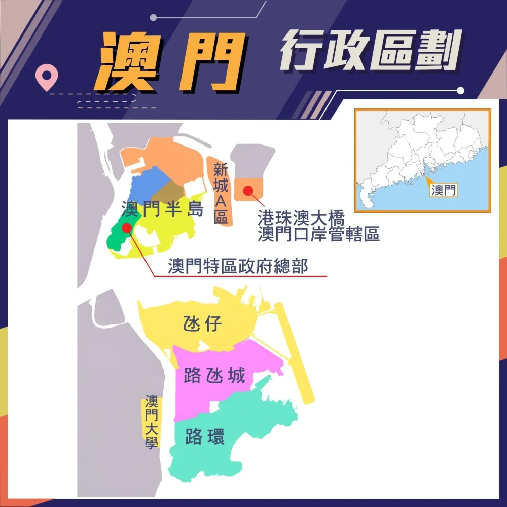 选酒店之前,首先要知道,澳门由北到南边可以分成以下四个区域:澳门半岛、凼仔、路凼城、路环。