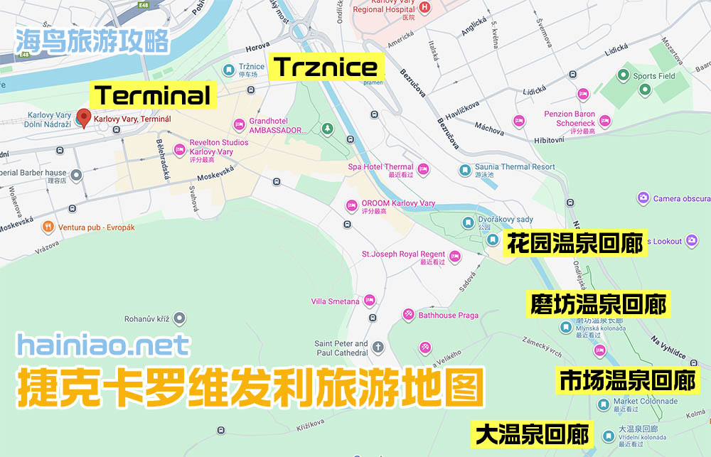 卡罗维发利:有Terminal(总站)和Trznice两个站点;去程在Trznice下车,离景点更近,但返程回布拉格只能在Terminal上车。
