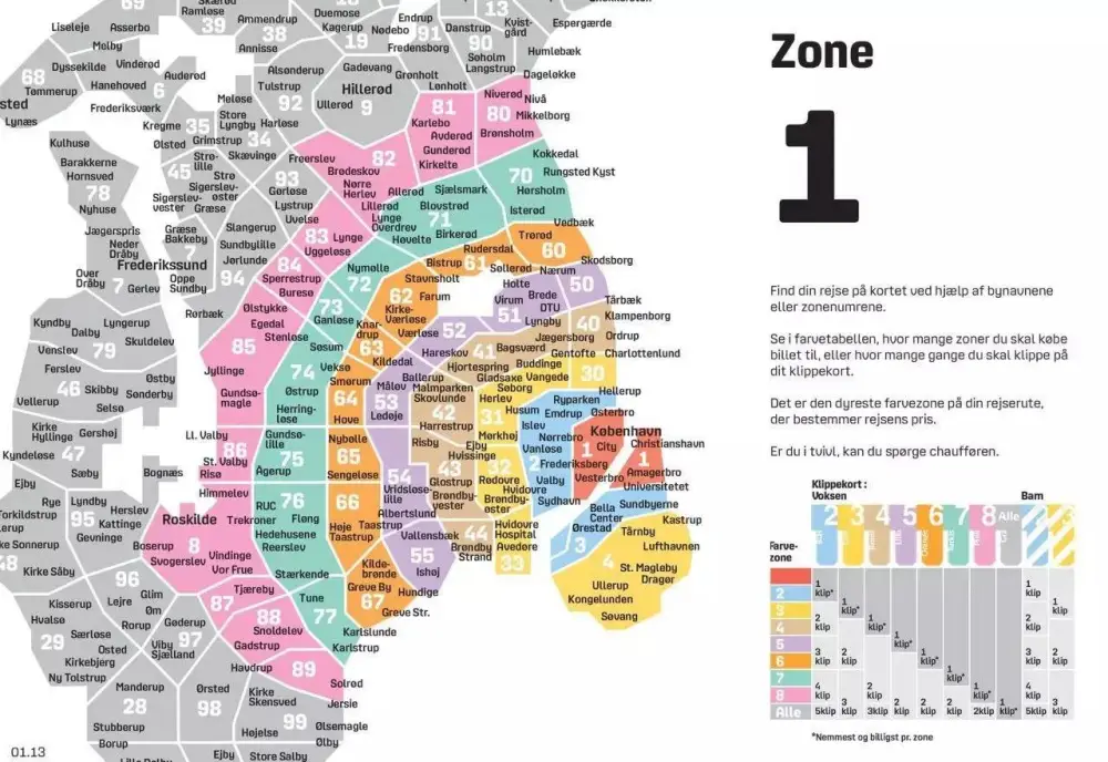 前往赫尔辛格或罗斯基勒需要8区票,价格为84克朗。