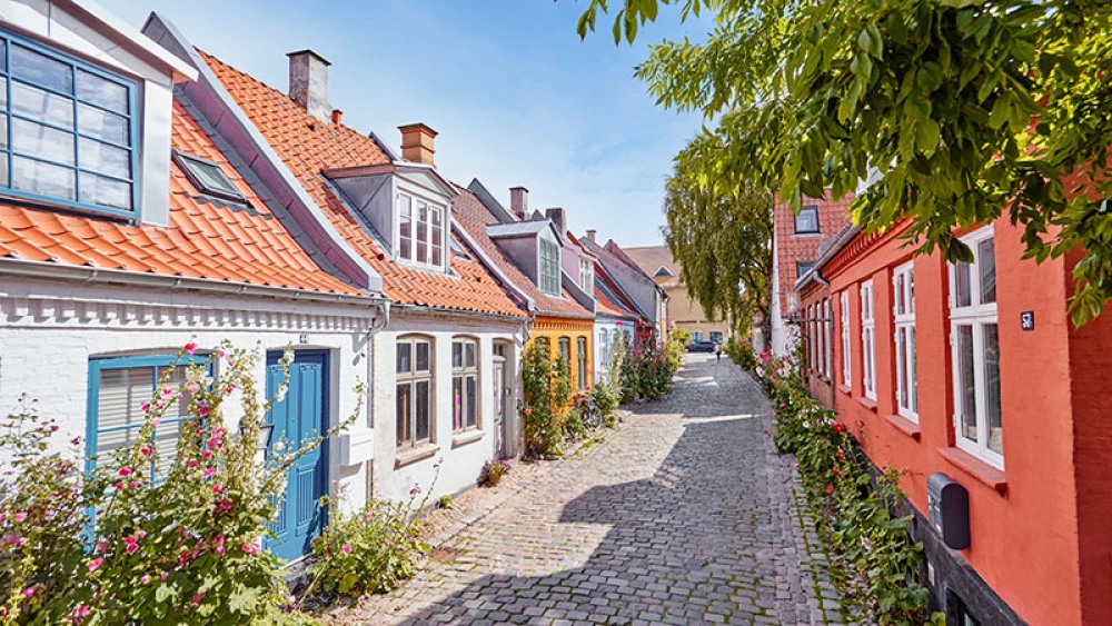 一条别致的小巷,路边全是丹麦特色的彩色小房子,五颜六色。