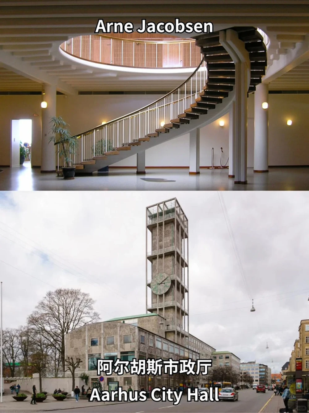 丹麦建筑师阿纳·雅各布森(Arne Jacobsen)的作品,1941年建成,风格异常简洁,和遍布欧洲大陆的那些古典市政厅形成鲜明的对比。设计的理念是“用简洁唤起民主和平易近人的政府精神”。