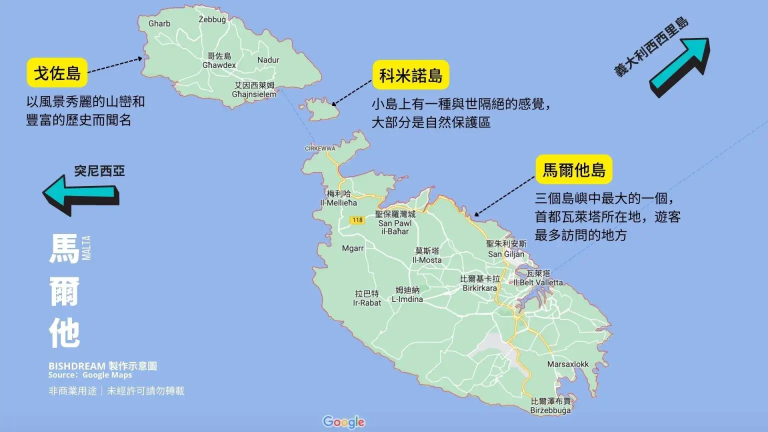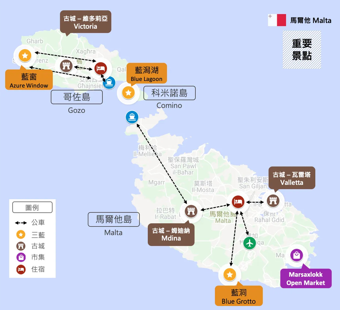 1. 马耳他岛主要城市及景点