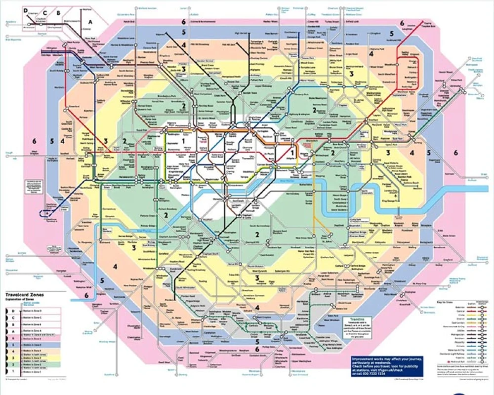 不过游客没有太大必要去研究所有的分区,因为伦敦市内大多数景点都集中在一区和二区。