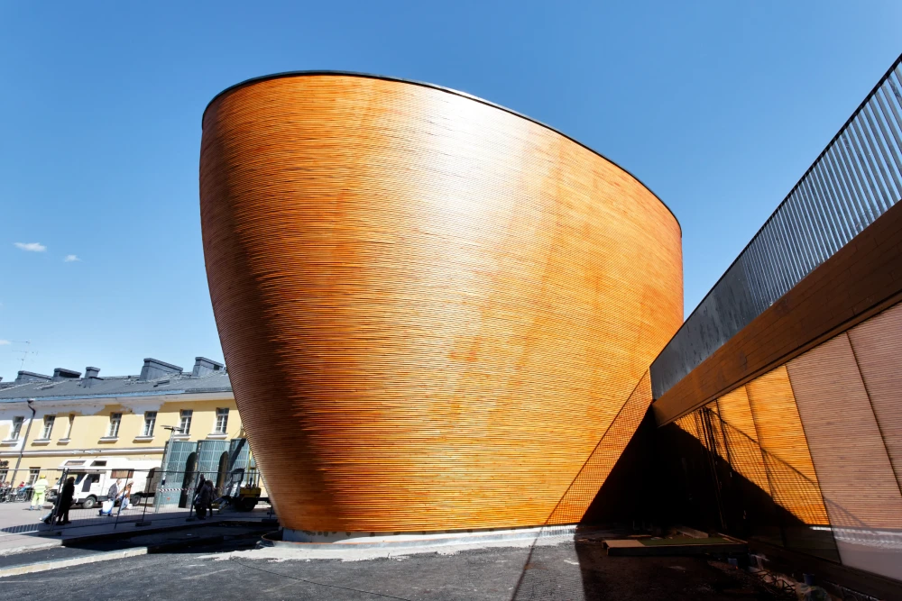 康皮礼拜堂位于赫尔辛基市中心的康比广场,是一座宁静的木质礼拜堂,造型独特、极具现代感,整座建筑由一根根弯曲的木条搭建而成,外表酷似一个大木桶,也被戏称为“木桶教堂”。静默教堂是2012年设计之都的项目之一,2013年底被美国“今日新闻网”评为“十个非去不可的世界新地标”之一。