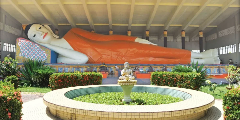 创庙年份超过100年,最初称为“菩提树佛寺”,取名于该寺里百年前一棵从斯里兰卡带来种植的菩提树,据说该尚存的菩提树是丹州最老最大的树。待1973年卧佛建成后才改为“卧佛寺”,。卧佛长41.2尺、高10.7尺,为东南亚最大,世界排名第二卧佛。卧佛前方有许愿池,后方墙壁有描绘佛陀感化信徒向善的故事图。
