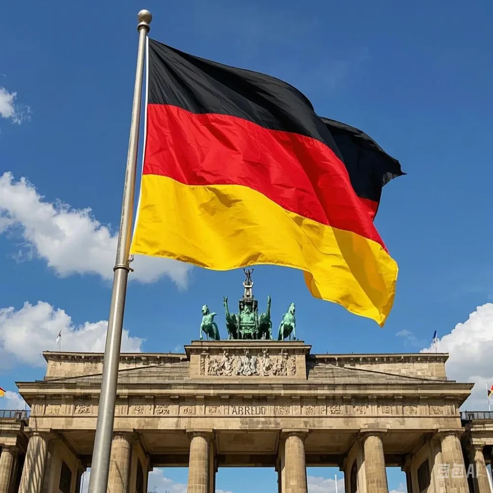德国国旗由黑、红、金三色组成,这三种颜色象征着德国的历史和自由精神。黑色代表坚韧不拔,红色象征勇气和力量,金色则代表智慧和繁荣。简洁而富有象征意义的设计,体现了德国人民对自由和民主的追求。