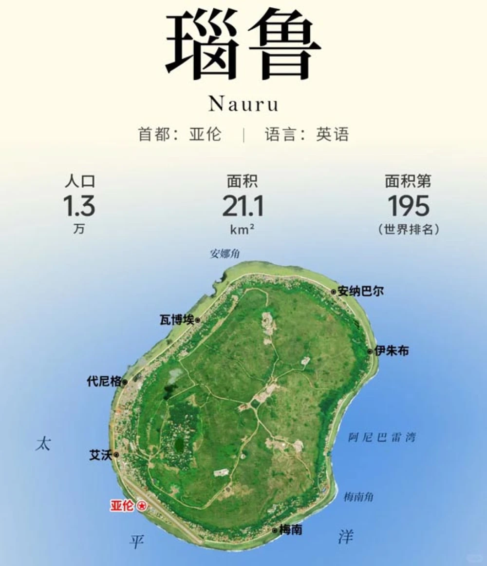 从人口来说,截至2024年1月,瑙鲁总人口约1.3万人,同样位居世界倒数第三,仅多于图瓦卢及梵蒂冈。