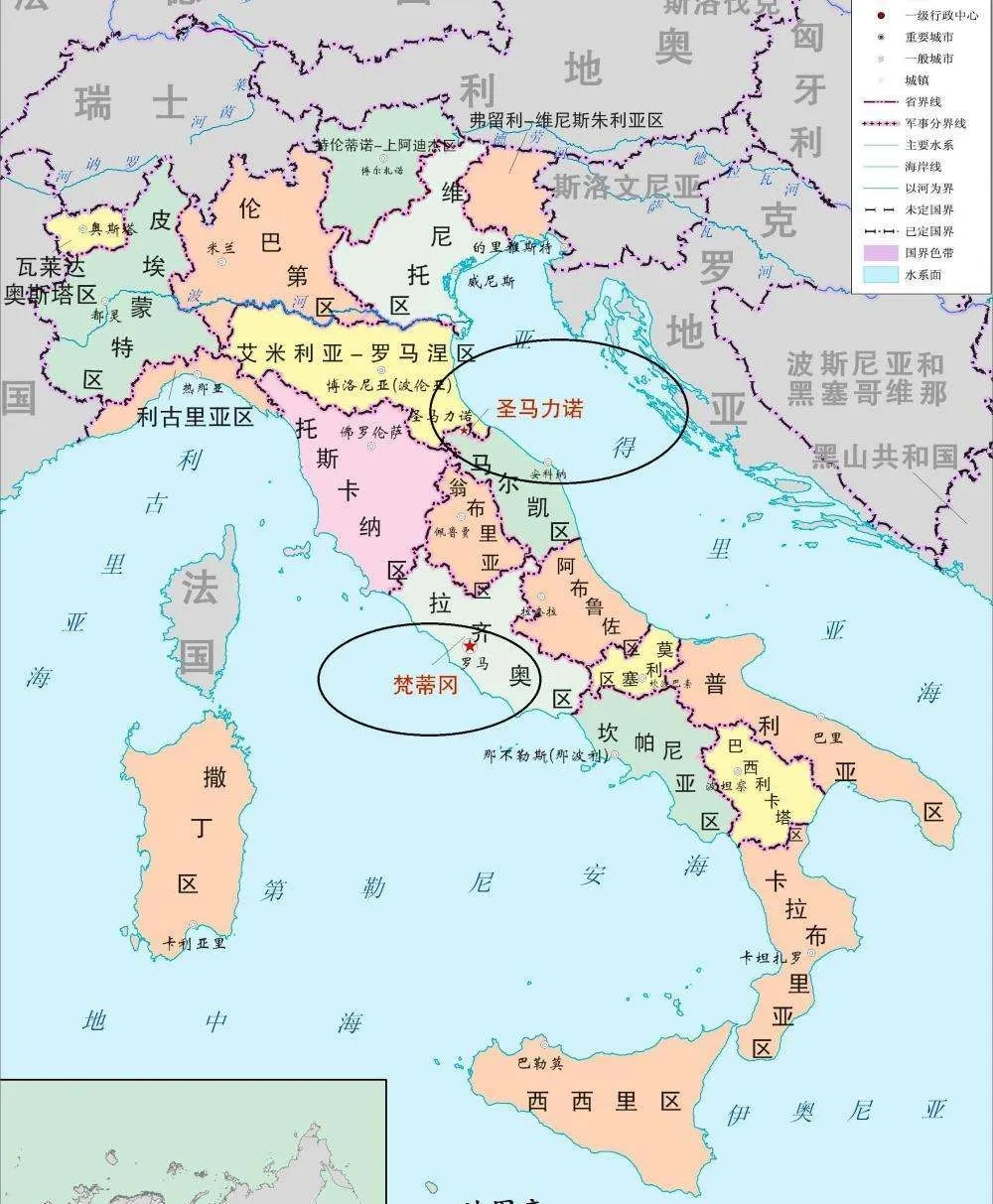圣马力诺位于欧洲南部,意大利半岛东部,整个国家被意大利包围,属于“国中国”,距亚德里亚海仅23公里。