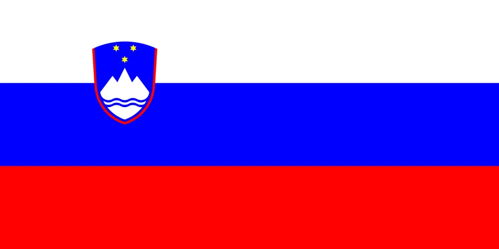 斯洛文尼亚国旗为白-蓝-红三色(泛斯拉夫颜色)旗帜,中间偏左侧附有斯洛文尼亚国徽。 该国旗于1991年6月25日斯洛文尼亚宣布脱离南斯拉夫当日制订,并于同年7月8日正式启用。 白(代表和平),蓝(代表合作),红(代表斗争)三色是包括斯洛文尼亚在内的绝大多数斯拉夫民族国家在国旗颜色上所采用色彩组合。白、蓝、红三色横条最早于1852年应用于斯洛文尼亚民族旗帜中。